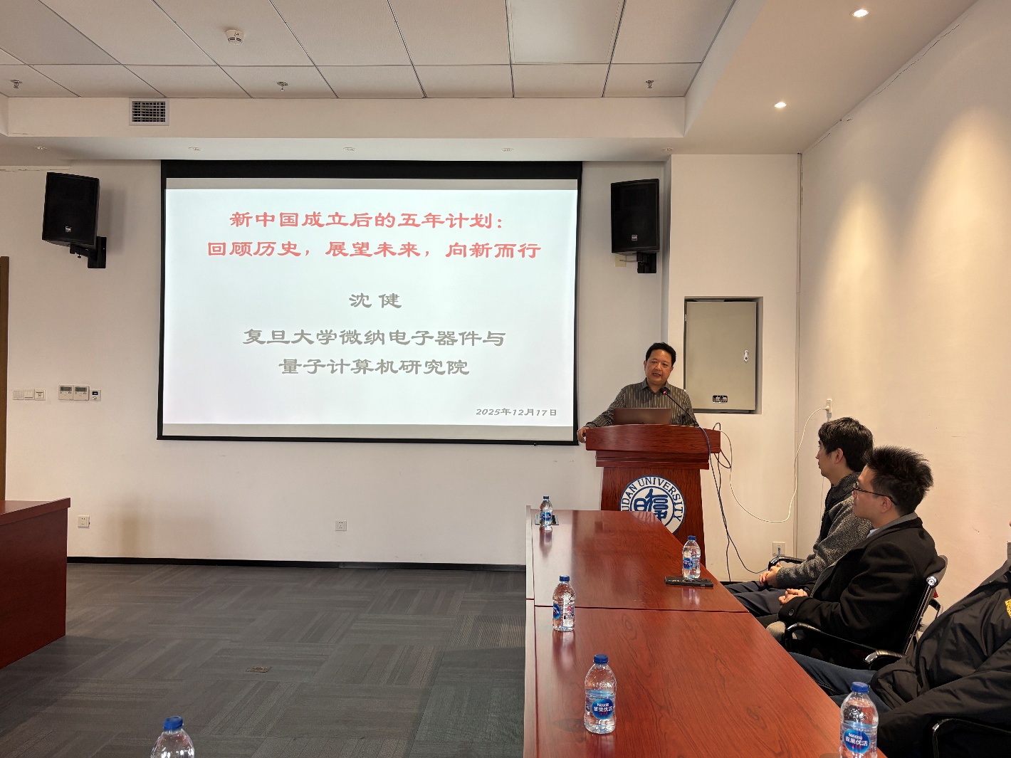 本次报告会特别邀请了沈健院长作为主讲报告人,报告题目是《新中国成立后的五年计划:回顾历史、展望未来、向新而行》。沈院长作为党的二十届四中全会精神复旦大学宣讲团宣讲专家,与参会人员交流分享了“五年计划”作为国家经济社会发展蓝图和行动纲领所具有的战略性地位和独特历史价值。