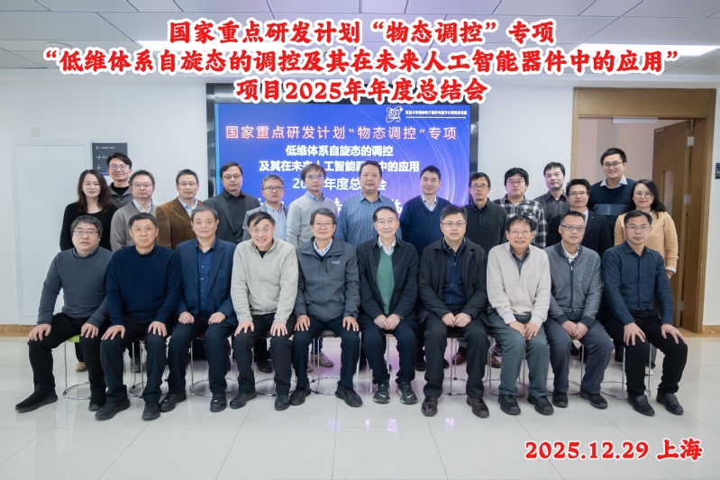 12月29日下午,国家重点研发计划“物态调控”专项“低维体系自旋态的调控及其在未来人工智能器件中的应用”2025年年度总结会在复旦大学江湾校区交叉一号楼B4003会议室举行。该项目由复旦大学牵头,联合中国科学院物理研究所、北京理工大学和中山大学共同承担,围绕“低维体系自旋态的调控及其在未来人工智能器件中的应用”这一核心主题开展系统研究。低维自旋体系不仅蕴含着丰富而深刻的基础物理问题,也为发展新型智能器件、探索新型计算范式提供了重要契机。